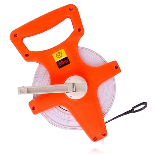 ANAMI メジャー 巻尺 50m オープンリールは、165ft(50メートル)のグラスファイバー製で、走り幅跳びや建設に最適。手動巻きで正確な計測が可能、頑丈な設計。