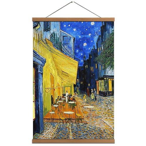 木子誉絵画館 ゴッホ 「夜のカフェテラスバージョン4」 アートパネル ポスター 風景画 絵画 インテリア おしゃれ ウォールアート 絵 玄関 階段 廊下 寝室 リビング 壁飾り 木目調フレーム付きの完成品(40×30cm)
