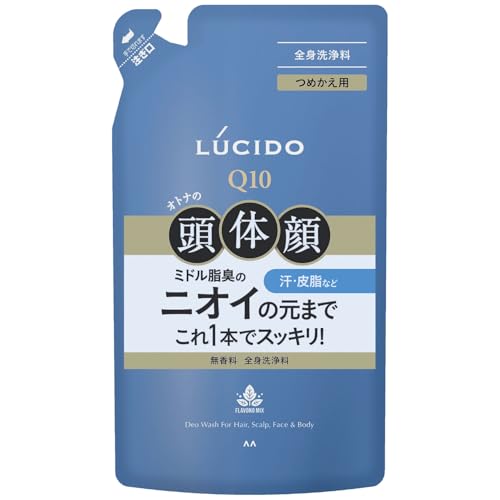 LUCIDO(ルシード) 全身デオウォッシュ つめかえ用は、全身に使えるシャンプー兼泡ソープです。洗浄力が高く、さっぱりした使用感が特徴。380mlのつめかえ用で、手軽に使えます。