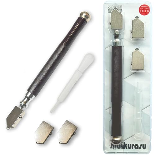 hibikurasu ガラスカッターは、オイル補充可能なローラータイプで、替刃付き。ガラス、タイル、ステンドグラスの切断に最適。DIYに便利なツールで、3〜12mmの厚さに対応します。