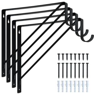 Socpuro 棚受け金具 フック付き 4個セット クローゼットロッドブラケット 280*280mm L字型 棚受け クローゼットロッド掛け ブラケット 2in1 スチール製 壁掛け 棚うけ 壁収納 棚づくり 100㎏耐荷重 ブラック