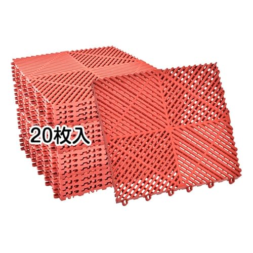kaitouのガレージタイルは、39.5cm×39.5cm×1.7cmの正方形で、20枚セットです。はめ込み式で置き敷きも可能。車庫やガレージに最適なレッドカラーのマットです。