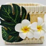 ハワイアンバスケットは、プルメリアとモンステラのデザインが特徴。小物入れやリモコン、カトラリーケース、ペン立てとしても使え、ハワイ雑貨としてお土産やプレゼントにも最適です。