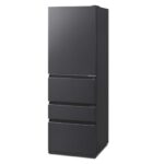 アイリスオーヤマの冷蔵庫、371Lのブラックモデルです。自動霜取り機能を搭載し、二段冷凍室を備えています。幅は60cmで、新生活や二人暮らしに最適なサイズです。モデル番号はIRSN-37A-Bです。