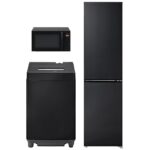 アイリスオーヤマの新生活セットは洗濯機7kg、冷蔵庫239L、レンジ17Lの3点を黒色で揃えた便利な家電セットです。初めての一人暮らしに最適なアイテムを提供します。