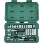 SATA 6角ソケットレンチセットは、差込角6.35mm(1/4インチ)の36点セットです。多様なサイズのソケットが含まれ、家庭や業務用に最適な工具です。耐久性に優れ、使いやすいデザインが特徴です。