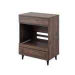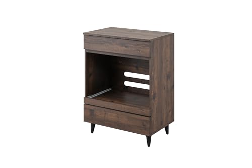 幅60のヴィンテージ風レンジ台。ブラウン色でスタイリッシュなサイドボード。キッチン収納に最適で、一人暮らしや新生活に役立つコンパクトなデザイン。スライド機能付きの引出しで家電収納もスムーズ。