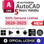 AutoCAD 2025バージョンの5年サブスクリプション。3ユーザー/3デバイス対応、Windows、MacOS、iPAD、Android、iOS、M1-M4対応。24以上の専門ツールセットを含む。