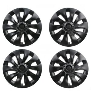 JoFist 旧モデルテスラモデル3、ホイールハブカバー、18インチ、フルエッジング、タイヤキャップ改造、ホイールハブカバー、4つのホイールハブカバー、傷防止に適しています (対称,マットブラック)
