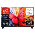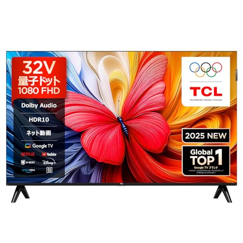 TCL 32V型 テレビ 量子ドット FHD 液晶 32V5C。Google TV、Wチューナー、ネット動画、Airplay2、クロームキャスト、Alexa対応。目保護、裏録画、音声検索、HDR10、Dolby Audio、HDMI、ゲームモード搭載のスマートテレビ。2025年モデル。