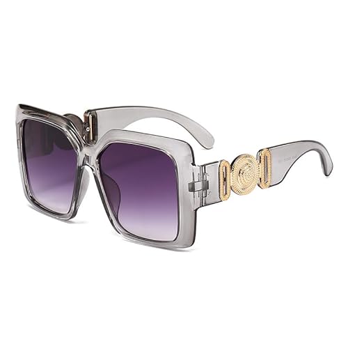 GuLiNiaoのレディースオーバーサイズサングラスは、デザイナーラグジュアリーのスクエアデザインで、UV400保護のフラットレンズ。グレー/クルーフリース、サイズ150mm。