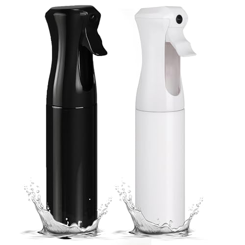 Aquableu ヘアスプレーボトルは、ヘアケア、スタイリング、クリーニング、植物、ペット、エッセンシャルオイル用の連続ミストスプレーです。10オンスのブラック&ホワイトのバラエティ2個パック。