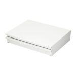 シービージャパンのレンジラック(完成品)は、ホワイトで幅50×奥行40.5×高10.8cmのサイズ。キッチン家電の下に設置可能なラックで、スライドテーブルと引出し付きで便利な収納スペースを提供します。