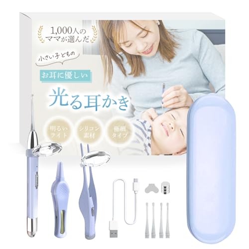 耳かきライトは、痛みを抑え、視認性が高い。USB充電対応で、拡大鏡付き。子供向けに設計され、2本のピンセットが付属。カラーバリエーションはパープル。