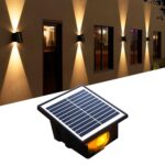 ZENZOのソーラーライトは、上下から発光する防犯用ガーデンライトです。1200mAhの大容量バッテリーを搭載し、自動点灯・消灯機能があり、IP65の防水性能を持っています。暖色光でフェンスや庭、玄関に最適です。