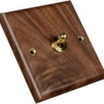 スイッチパネルはレトロなデザインで、無垢材と真鍮製のトグルスイッチを使用。木目が美しいウォールライト用スイッチプレート。電気スイッチソケットに最適です。