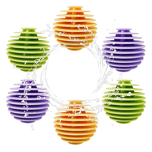 繰り返し使えるドライヤーボール6個セット。静電気防止で洗濯物が絡まらず、非毒性素材採用。生地を柔らかくし、クリーニング効果を向上させます。Lサイズで洗濯機用に最適です。