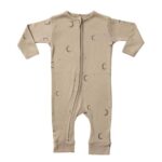 マリンブルーのロンパースは、男の子・女の子兼用の長袖カバーオールです。秋冬に適したデザインで、前開きのジップアップ仕様。新生児や赤ちゃんにぴったりで、足つきの80cmサイズです。