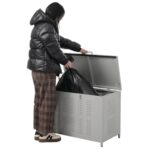 OSLEEPの屋外ゴミ収納庫は210Lの大容量で、ゴミ集積所として使用可能。カラスや野良猫対策に優れ、庭でも活躍します。防止機能が充実したごみ収集ボックスです。