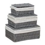 / DrivEx収納 バスケット ペーパーバスケット フタ付き収納かご カゴ 籠 小物入れ 小物収納 収納ケース 蓋付き リビング 卓上収納 トイレ ブラウン トイレットペーパー入れ おしゃれ お引越し リビング ベッドルーム 事務用品 整理用品 (グレー,L)