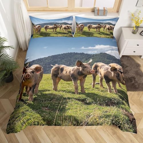豚柄布団カバーシングル3点セットは、かわいらしい豚のデザインが特徴。セット内容は、布団カバー、枕カバー、シーツの3点。柔らかい素材で肌触りが良く、洗濯可能でお手入れも簡単。室内でのリラックス空間を演出します。