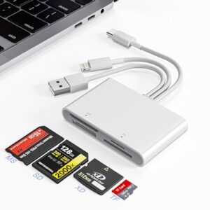 コンパクトフラッシュリーダーとSD/TFカードスロットを備えた2-in-1 USB-C/Aマルチカードリーダー。OTG対応でスマホ、タブレット、MacBook、Windows PCに適用。