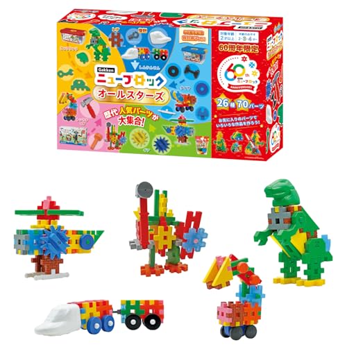 学研 Gakkenニューブロック オールスターズは、2歳以上向けの楽しいブロックセットです。26種類、合計70パーツが含まれ、多様な形やサイズで創造力を育むことができます。