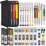 Nicpro 39本パックの大工用鉛筆セット。シャープナーと替芯102本付き。ロングペン先マーカーと超硬スクライブツールも含まれ、持ち運びに便利なケース付き。