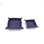 PUレザーバレットトレイ2個セットは、ポータブルデザインでナイトスタンドや玄関に最適。折りたたみ式でコインや財布、ジュエリーを収納できます。ホームオフィスにも便利なブルーのアイテムです。