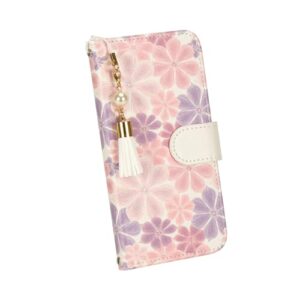 らくらくスマートフォン F-53E ケース 手帳型 docomo F-53E チャーム な タッセル ストラップ付き カード かわいい TPU スタンド 機能 F-53E スマホケース(らくらくスマートフォン F-53E, サクラ)