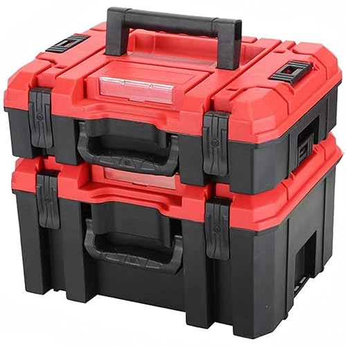このツールボックスは、先端ツールや電動工具の収納に最適です。持ち手が2個付いており、横持ち・縦持ちができ、連結や積み重ねも可能。持ち運びに便利で、DIYに役立ちます。
