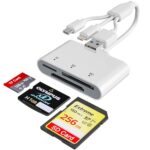 iPhone用3in1 SDカードリーダーは、SDカード、microSDカード、USB接続に対応。データ転送が簡単で、カメラの写真を直接iPhoneに取り込むのに便利です。コンパクトなデザインで持ち運びも簡単。