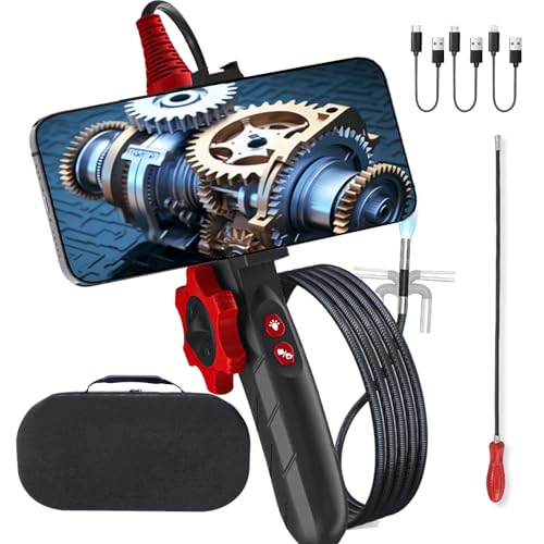 ファイバースコープ、1080P画質、180°回転、8.5MMレンズ、6個LEDライト内蔵、IP67防水、動画と写真撮影可能。自動車や配管などの点検に最適。iPhone/android対応。