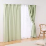 無印良品の綿洗いざらし平織ノンプリーツカーテン、幅100×丈200cm、グリーンです。自然な風合いで、洗濯可能。インテリアに爽やかなアクセントを加えるアイテム。