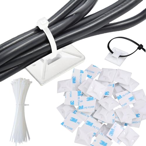 GLOWZENのケーブルタイ マウントベースは、100個セットの高粘着タイプ。ホワイトカラーで、サイズは20×20mm。ケーブル整理に最適で、3Mの粘着力でしっかり固定します。