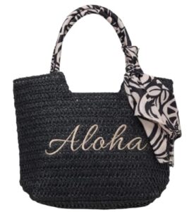 【BLACK】○o。ハワイアン ペーパー素材 ミニトートバッグ ALOHA ロゴ入りスカーフ 夏 ALOHA ハワイアンバッグ ハイビスカス モンステラ ティアレ フラガール レディースバッグ 雑貨インテリア プチプラバッグ ハワイ雑貨 人気 可愛い ハワイ お土産 ヤシの木 ハワイ生地 。o○ 10008701