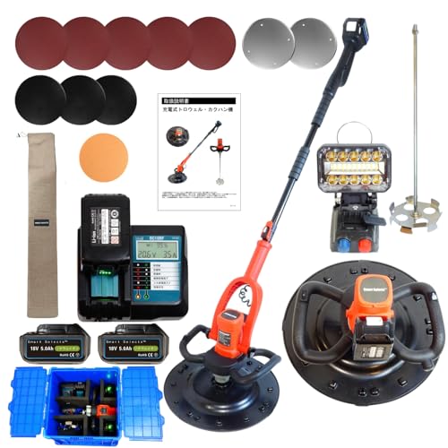 充電式トロウェル ZX-39は、コンクリート研磨、土間仕上げに最適なハンドトロウェル。6速調整可能で、マキタ互換バッテリー2個付き。液晶表示充電器と4種類の回転盤、延長ハンドルも完備。PSE認証取得済み。