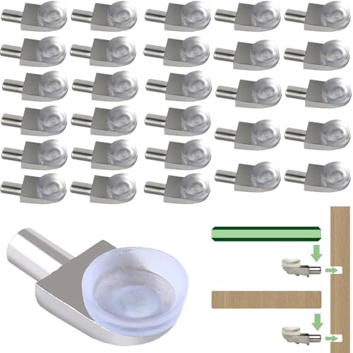 棚ダボ 30個セット、Φ5mm直径の差し込みタイプで簡単取り付け。ネジ不要、PVC吸盤付きでガラスクランプにも対応。壁掛けや書棚、ガラス戸棚に最適なサポートピンです。