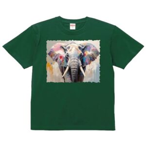 [ネクラス] Tシャツ ペイント イラスト カラフル 象 ぞうさん グリーン Sサイズ メンズ レディース ジュニア キッズ 半袖 コットン100% 綿100% ティーシャツ デザイン プリント 5.6オンス zakka043-1199