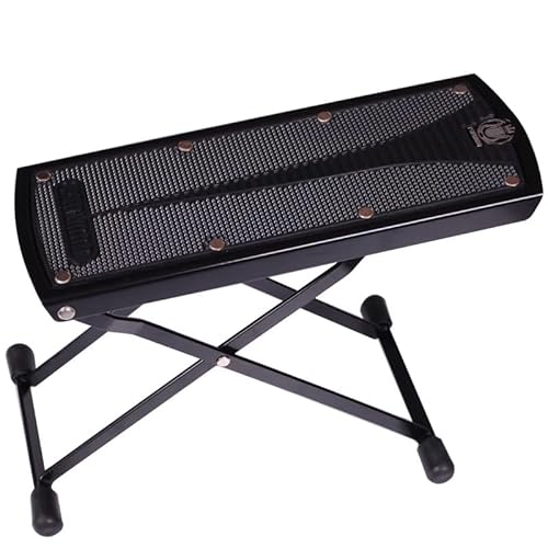 KIZAIキザイギターフットレストは、金属製でアコースティックギターやエレキギターに対応。高さ調節可能で、折りたたみ式のデザインが便利な黒色のフットペダルです。