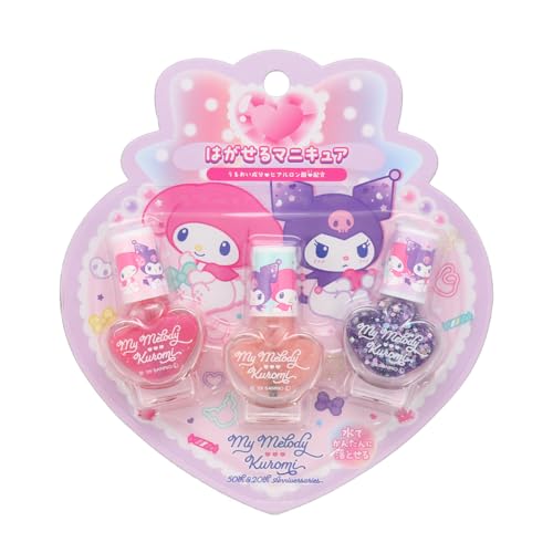 shobido 粧美堂 サンリオはがせるマニキュア3本セットは、マイメロディとクロミをテーマにしたキッズ向けコスメです。子供でも安心して使えるはがせるタイプで、楽しくネイルアートが楽しめます。