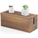 ISHUケーブルボックスは、配線を隠して整理する木製の収納ボックスです。コンセントやコードをスッキリまとめ、ルーター収納にも適したブラウン色のデザインです。
