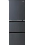 ハイアールのスリム冷蔵庫JR-CV29C(H)は、幅54cmで286Lの容量。真ん中に野菜室、霜取り不要で静音設計。省エネ性能も優れ、ファミリー向けのマットグレー外観です。