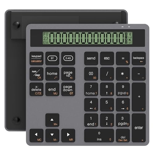 Bluetoothと2.4Gワイヤレス対応の2in1テンキー電卓。34キーでスリムデザイン、ノートPCやデスクトップ、スマホと連携しデータ入力と計算が可能。
