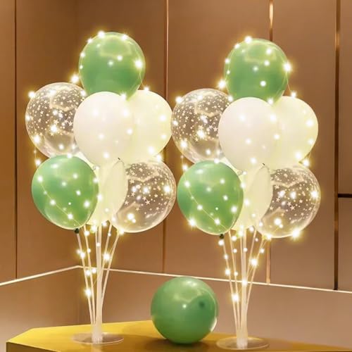 SumAAfuのバルーンスタンドは2台のホルダーと風船セット、10メートルのUSBライト付き。誕生日や結婚式、パーティーの飾り付けに最適。白とグリーンのカラー。
