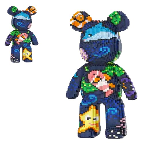 VIIOVOIIVのブルーグラフィティベアブリックマイクロビルディングブロックセットは3688ピースで構成され、アニマルデザインの積み木です。大人と子供へのギフトに最適です。