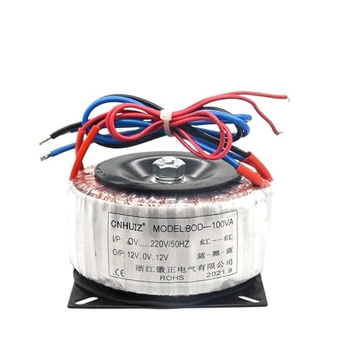 100VAトロイダルパワートランスは、100W出力で220V電源に対応。AC12Vのデュアル出力を持ち、リング銅を使用。ホームアンプに最適です。