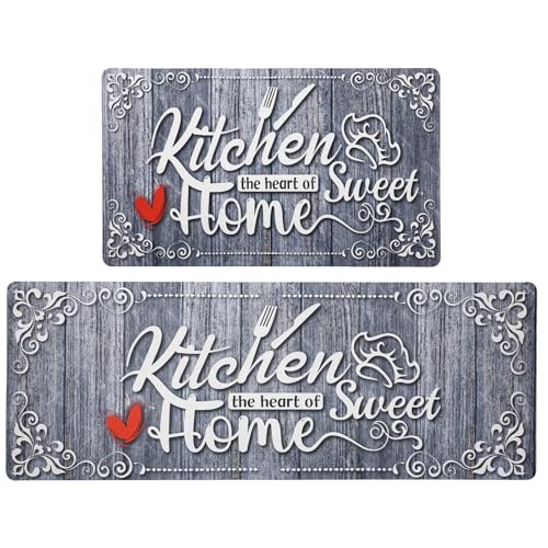 XLHOMO キッチンランナーラグ4点セットは、カーテン付きでノンスリップ仕様のクッションキッチンカーペット。防水性があり、快適に使用できるラグとマットが含まれ、シンクやランドリールームに最適です。