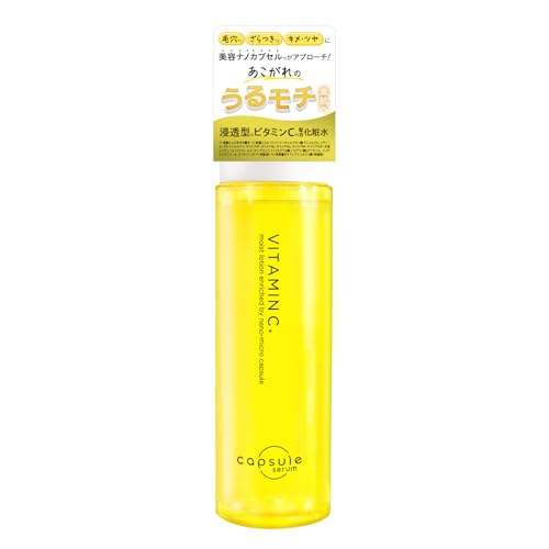 CAPSULESERUMカプセルセラムは、ビタミンCとナイアシンアミド3%配合の化粧水です。毛穴や肌の弾力、ハリをサポートし、高保湿を実現。乾燥肌、敏感肌、オイリー肌にも適し、CICA、セラミド、ヒアルロン酸、コラーゲンを含んでいます。200mlの大容量。