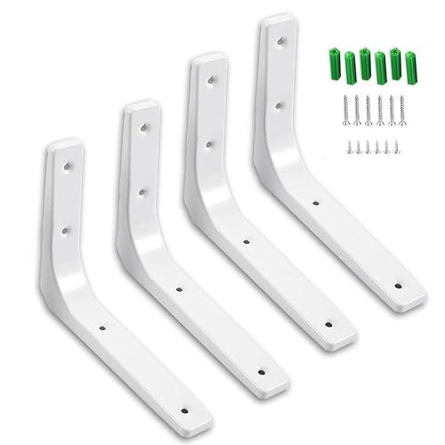 堅塁金物のL字型棚受け金具は、直角一体成形で耐荷重70kgを実現。白色で、サイズは300mm×250mm×30mm、4個入りで壁掛け棚に最適。ネジ付で簡単取り付けが可能です。
